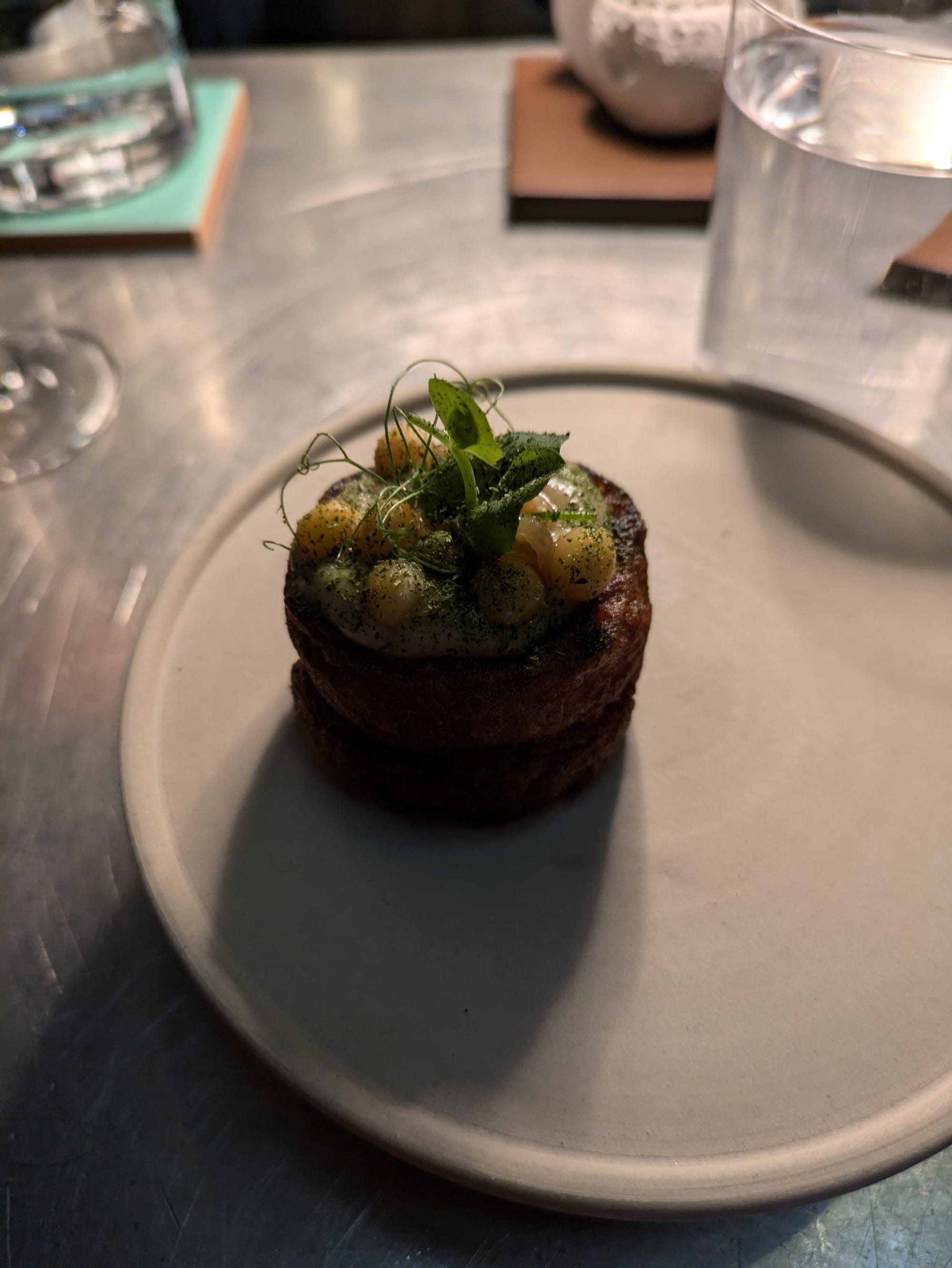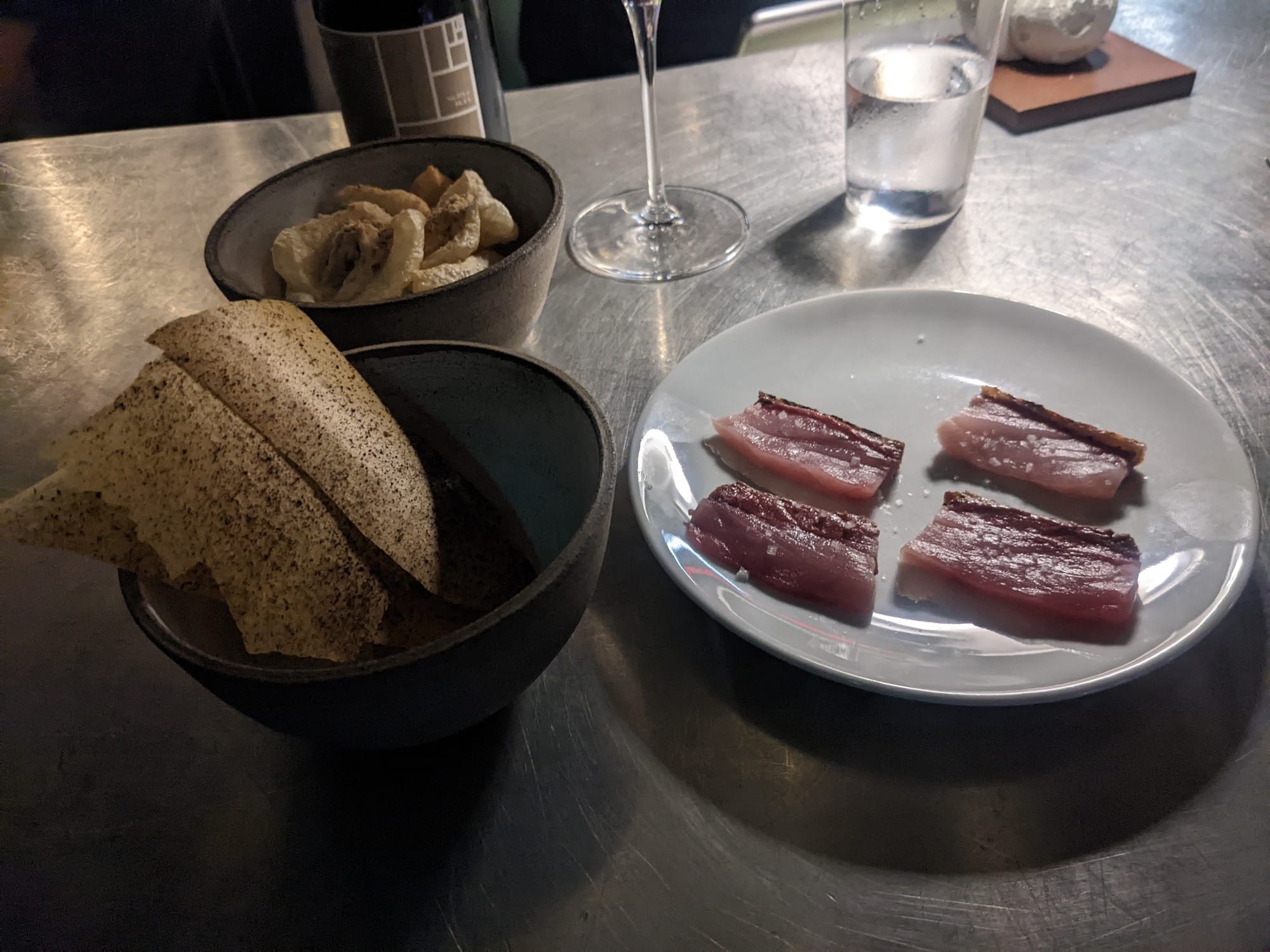 Another dish from the 2022 menu that stood out to me was a serving of pork crackling seasoned with a powder made from pork and lard, smoked potato chips and lightly grilled hamachi. Interestingly from the November 2022 menu compared to 2024, you do not find orthodox brutalist dishes in the 2024.